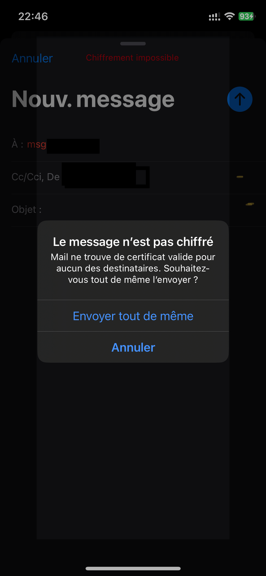 Comme j'ai anticipé la remarque, nous allons voir qu'il existe une application tierce très connue qui utilise le chiffrement PGP nativement : Proton Mail. Mais avant cela, regardons d'abord ce que S/MIME permet de faire pour rester dans l'optique de chiffrement à partir de l'appli native de courrier.